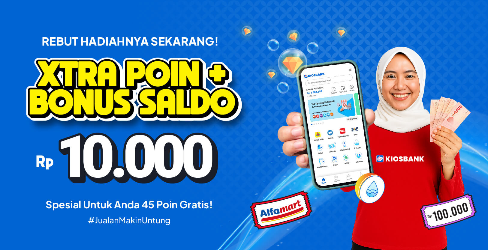 Yuk Transaksi sekarang di Aplikasi Kiosbank, dan ikuti Promo Xtra Poin + Bonus Saldo Mitra Kiosbank.
